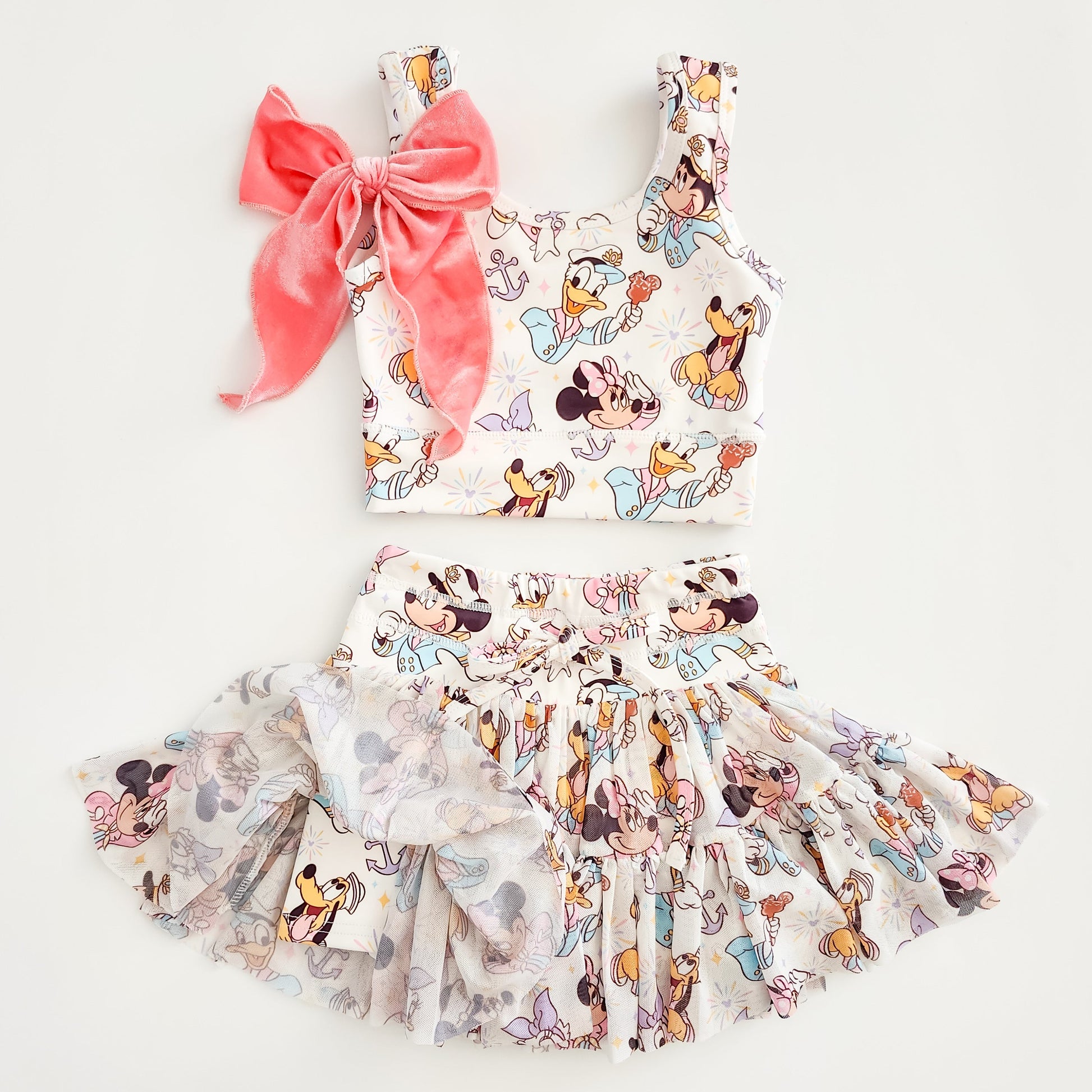 Our new activewear is the perfect outfit for a sunny day at the park! Set includes both top and bottom, with biker shorties attached to skirt. We recommend thoroughly reviewing the size chart below to determine the perfect fit. Some things to consider about the size chart and fit-this collection is made to have a snug fit. Though both items offer stretch, the stretch is minimal. Size chart below offers measurements in inches, while the garment is laying flat, and not stretched. Add 2 inches for a comfortable stretch. We do not offer returns for our custom made pieces, so if in doubt, simply message us on our socials.